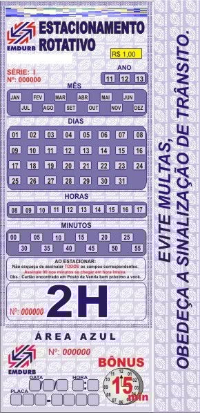 Nos locais citados valerá o cartão azul que dá direito a permanecer estacionado por um período de 2 horas com o custo de R$ 1,50 (um real e cinquenta centavos). A Emdurb orienta para que a pessoa usuária do estacionamento rotativo tenha consigo o talão de rotativo, facilitando assim a colocação do cartão no veículo no momento em que deseja estacionar.