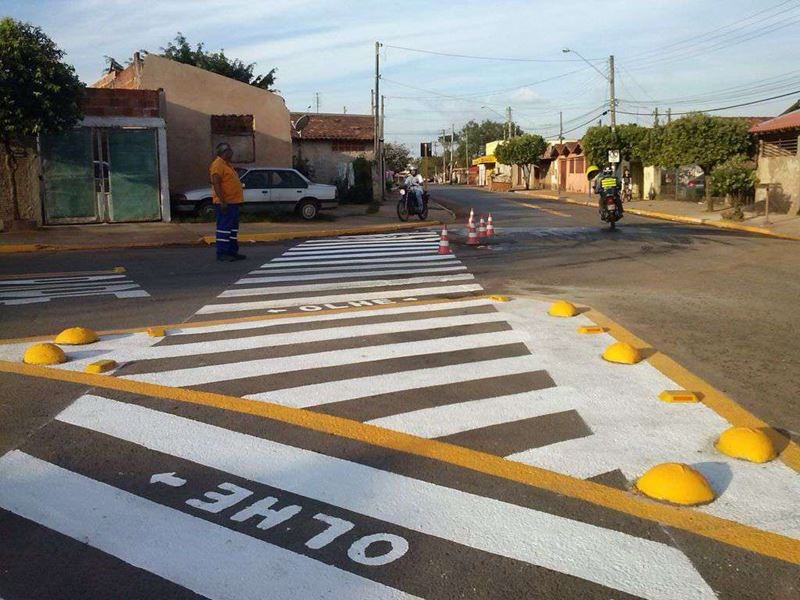 No quarteirão 38 da avenida Castelo Branco foi implantada faixa de pedestres visando aumentar a segurança da travessia de pedestres do residencial Monte Verde e do Bairro Granja Cecília.