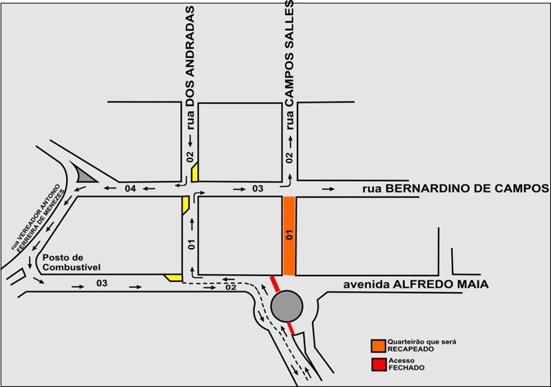 Na próxima terça-feira (26), está previsto recape asfáltico no quarteirão 01 da rua Campos Salles, a ser realizado pela Secretaria de Obras. Para tanto, o quarteirão 01 da rua Campos Salles estará interditado para o trânsito de veículos enquanto durarem os serviços de recape.