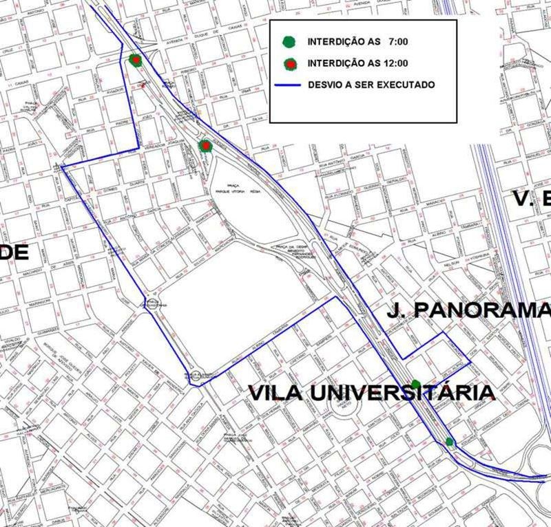 -A partir das 12h, no sentido Centro – Geisel, a avenida Nações Unidas, será interditada a partir do quarteirão 18 (sob o viaduto da Duque de Caxias). Por conta da interdição, o desvio será feito pela rua Joaquim Fidélis, Joaquim da Silva Martha, Alameda Octávio Pinheiro Brisolla, Albino Tâmbara, chegando até a Avenida Nações Unidas, na altura do quarteirão 27. As interdições serão mantidas até o final das festividades. Os Agentes de Fiscalização de Trânsito estarão nas imediações do Parque organizando o trânsito e orientando os motoristas. Também às 12h, no sentido Centro – Geisel, a alça de acesso da avenida Nações Unidas para rua rua José Ferreira Marques também será interditada.