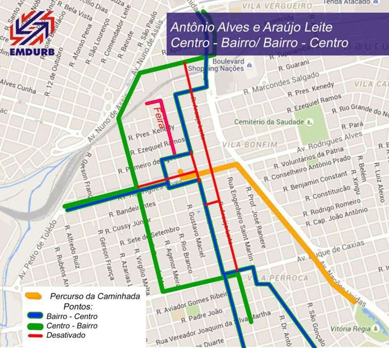 As linhas que realizam Ponto Final na Praça do Líbano deverão fazer Ponto Final na rua Antonio Alves, quarteirão14.