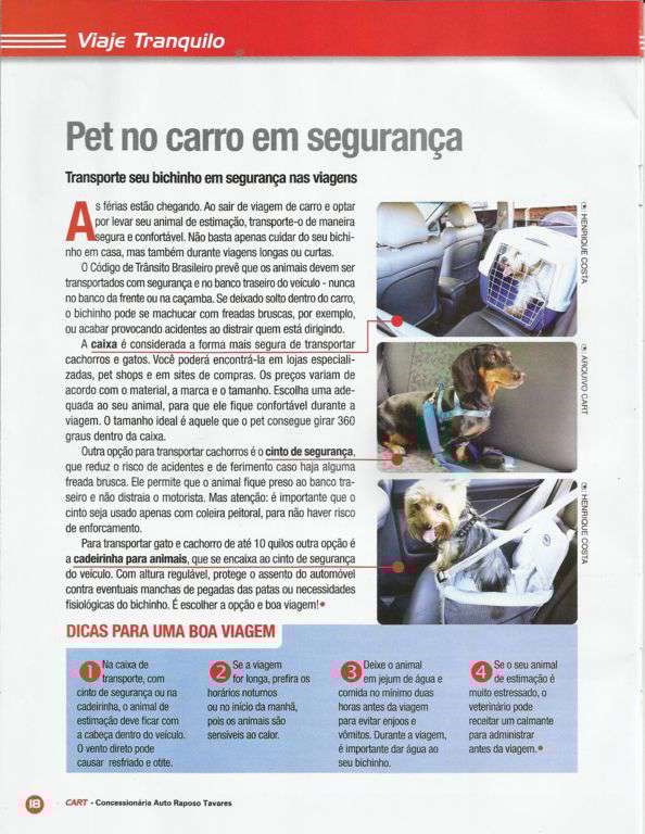 Cuidado ao transportar seu animal de estimação no veículo. Faça-o corretamente. Confira a dica da parceira CART no folheto anexo.