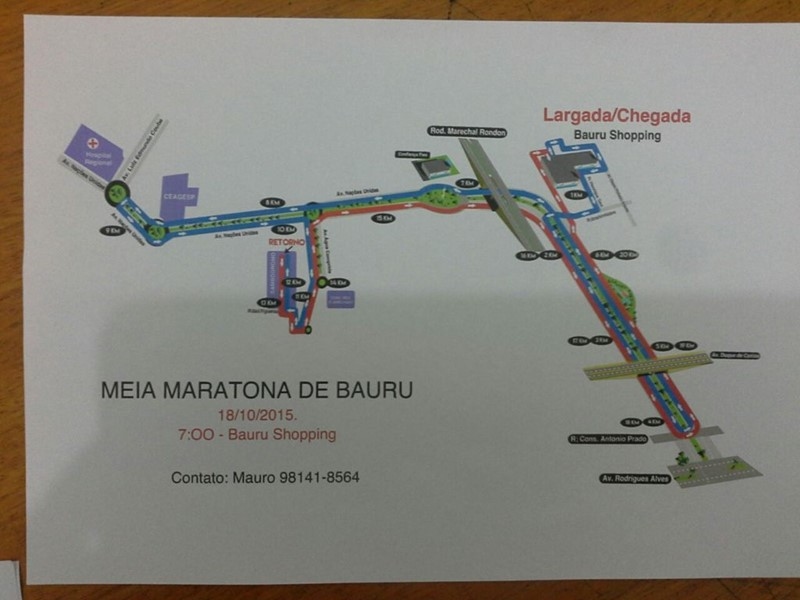 No domingo (18), acontecerá a corrida Meia Maratona de Bauru. O mapa anexo mostra as ruas interditadas e os desvios programados.
