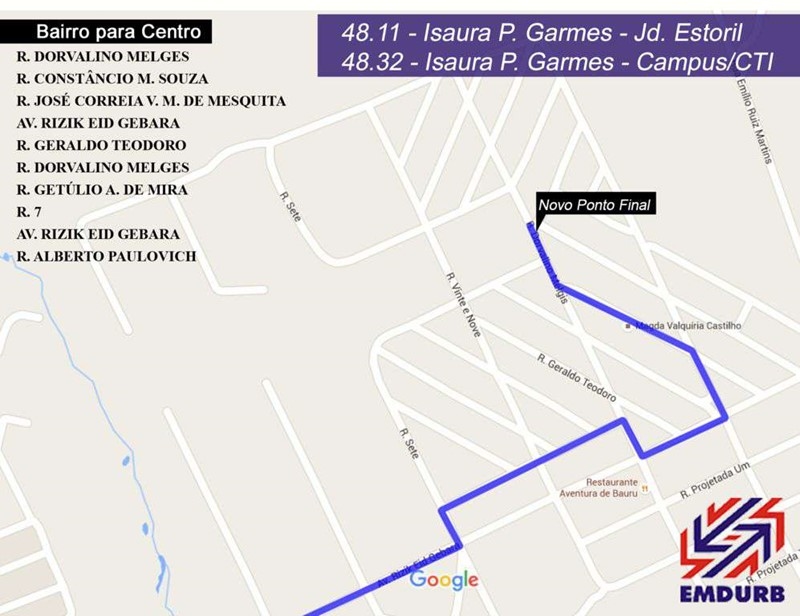 Emdurb informa sobre alteração do Ponto Final e Itinerário das linhas “Isaura P. Garms - Jardim Estoril” e “Isaura P. Garms - Campus/CTI”