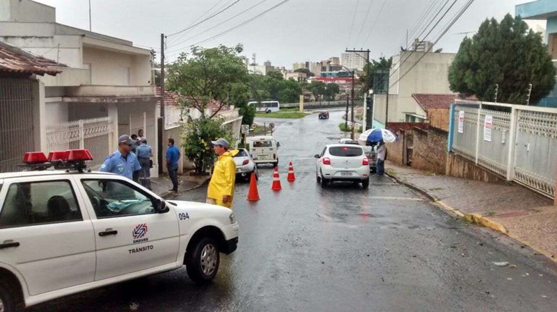 Agentes de Trânsito sinalizam locais prejudicados pela chuva