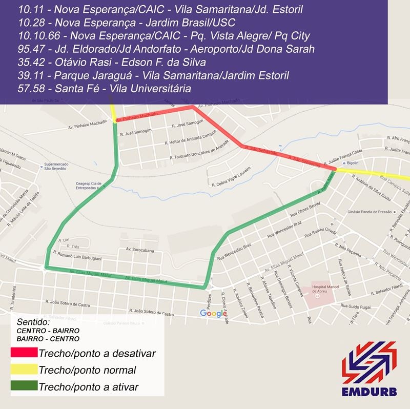 Devido a interdição da Avenida Daniel Pacífico, as linhas “Interbairros Horário”, e “Interbairros Horário”, operam em itinerário especial: