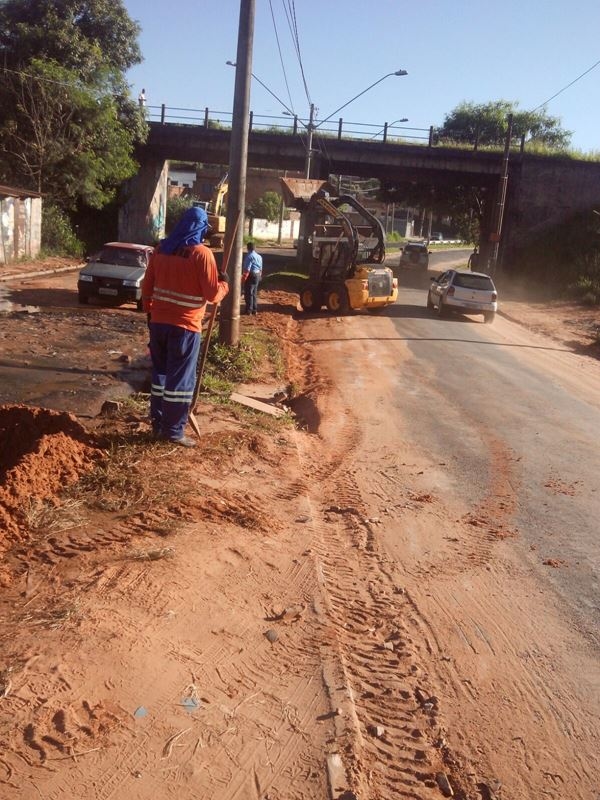 Equipe de limpeza da Emdurb realiza serviço de retirada de terra acumulada na avenida Daniel Pacífico, quarteirão 01, ambos sentidos. O serviço deve ser finalizado no final do dia.
