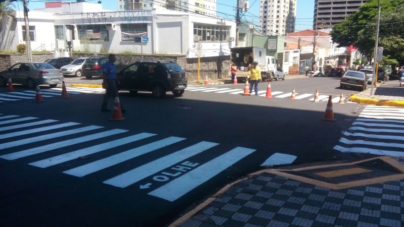 -Manutenção de faixas de pedestres e pintura de vaga rápida nas ruas Sete de Setembro e Treze de Maio;