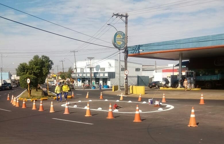 Nesta terça-feira (26/06), a Emdurb iniciou o processo de reimplantação de um dispositivo viário (mini rotatória) no quarteirão 17 da avenida Dr Marcos de Paula Rafael, no Mary Dota.