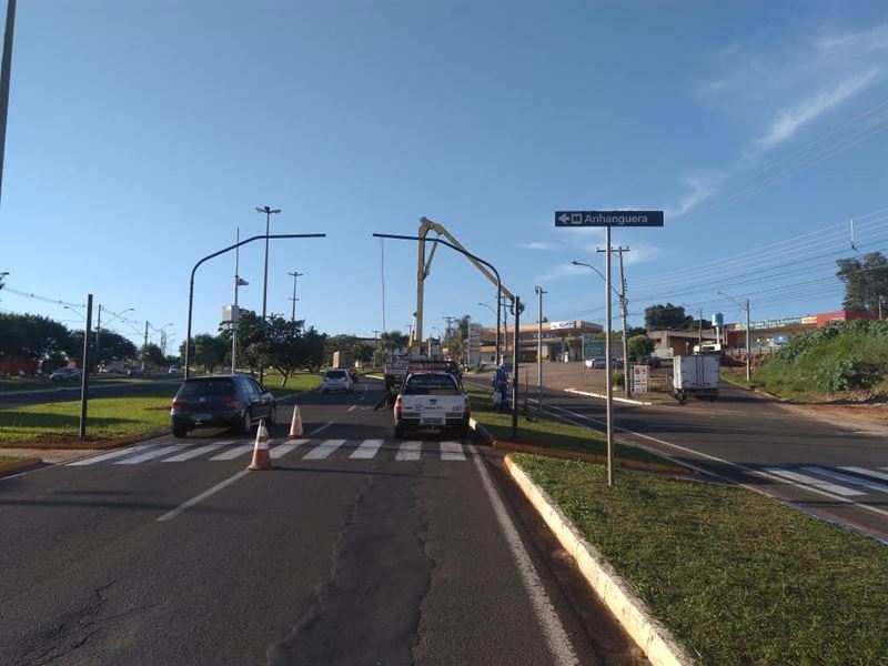 Equipe semafórica da EMDURB deu início nesta semana, o serviço de instalação dos suportes (colunas e braços projetados) para instalação de semáforo veicular e de pedestres (botoeira) no quarteirão 04 da avenida Moussa Tobias, em frente a faculdade Anhanguera.