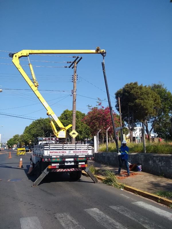Equipe semafórica da EMDURB deu início ao serviço de instalação dos suportes (colunas e braços projetados) visando a implantação de conjunto semafórico no cruzamento da rua Bernardino de Campos com rua Mara Lúcia Vieira, na Vila Giunta. O semáforo entrará em funcionamento após a implantação de toda estrutura e preparação do cruzamento com entradas de energias e sinalização viária necessária.