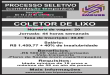 DESCRIÇÃO SUMÁRIA DO CARGO: Executar a coleta de resíduos (orgânico ou reciclável) em vias públicas e logradouros públicos, colocando-os em veículos apropriados, mantendo a limpeza e a higiene do município.