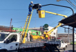 -Instalação dos suportes (colunas e braços projetados) do conjunto semafórico na avenida Castelo Branco com a Praça Primaz Chujiro Otake.