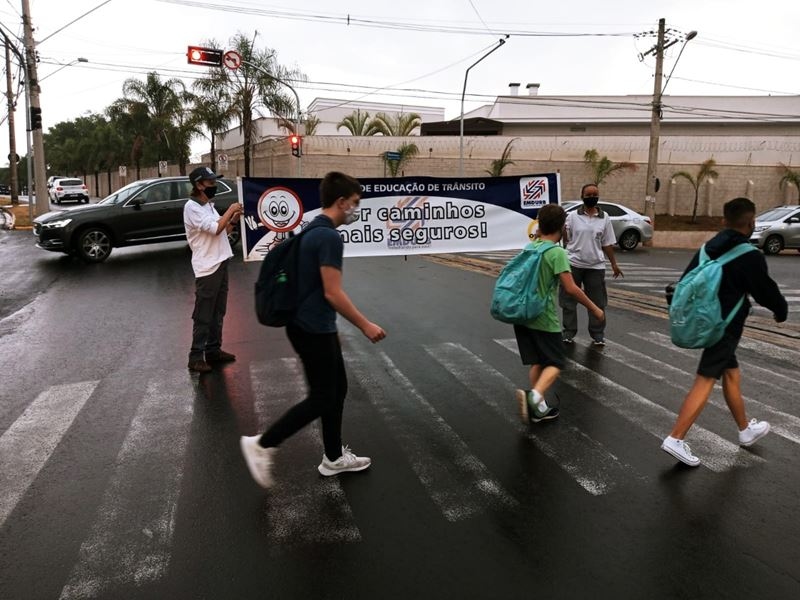 Com o objetivo de enfatizar a necessidade do respeito às faixas de pedestres para uma travessia segura, o Setor de Educação para o Trânsito e Mobilidade da EMDURB e o GOT - Grupo de Operações de Trânsito, realizaram na manhã desta quarta-feira (15) uma ação educativa com os alunos de escolas localizadas nas proximidades da avenida Affonso José Aiello.