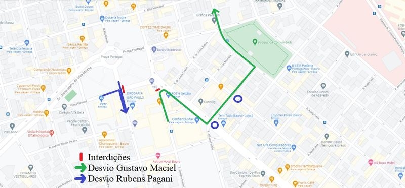 Ficará interditado também, o quarteirão 05 da rua Rubens Pagani. Os veículos que estiverem nas ruas Rio Branco e Rubens Pagani seguirão pela rua Rio Branco, sentido zona sul.