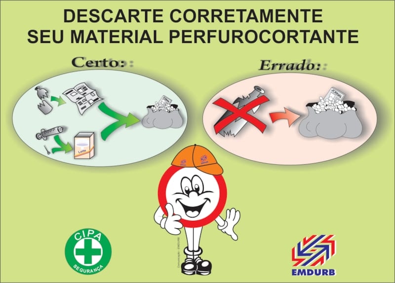 A EMDURB continua solicitando à população que embale corretamente o resíduo perfurocortante antes de descartar para a coleta. Assim, vidros quebrados, agulhas ou até mesmo palitos de espetinho de churrasco, devem ser acondicionados em jornal, caixinhas de leite ou garrafa pet e fechados de forma que a embalagem não se desfaça. Esse descarte adequado, além dos coletores, protege também quem manuseia o lixo até a rua.