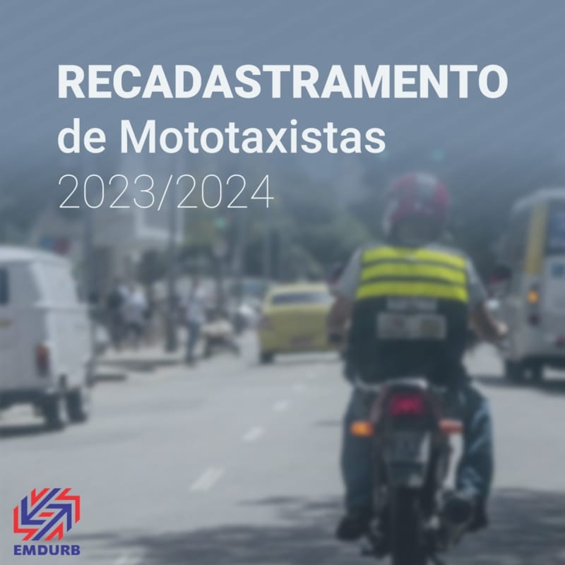 Termina nesta quarta-feira, 31, o recadastramento dos Autorizatários do Transporte Individual de Mototáxi, para o exercício da atividade no período de 2023/2024. Os interessados devem comparecerem no Setor de Fiscalização de Transportes Especiais da EMDURB, localizado no Terminal Rodoviário, das 8h30 às 11h30 e das 13h às 16h30, munidos de original e cópia dos seguintes documentos: