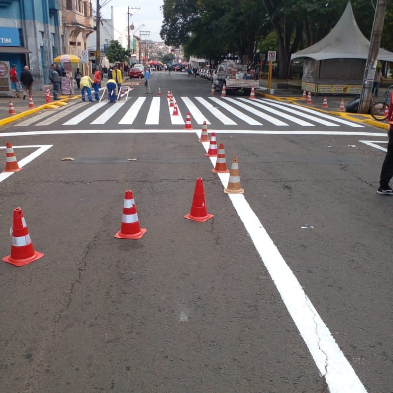 - Pintura de faixas de pedestres e de vagas nos seguintes cruzamentos: