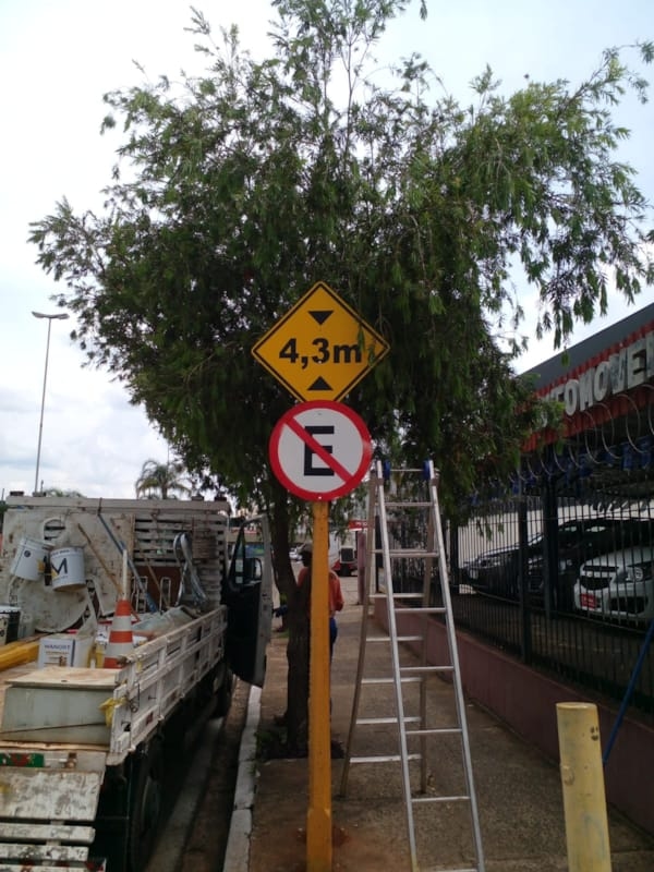 O Setor de Sinalização da EMDURB, com apoio do GOT, substituiu nesta quinta-feira, 09, as placas indicativas de altura no viaduto da linha férrea, no quarteirão 04 da avenida Nações Unidas.