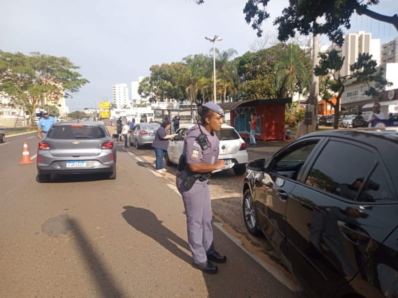 Foram abordados mais de 100 veículos durante ação, onde os motoristas receberam informativos e foram orientados sobre segurança no trânsito.