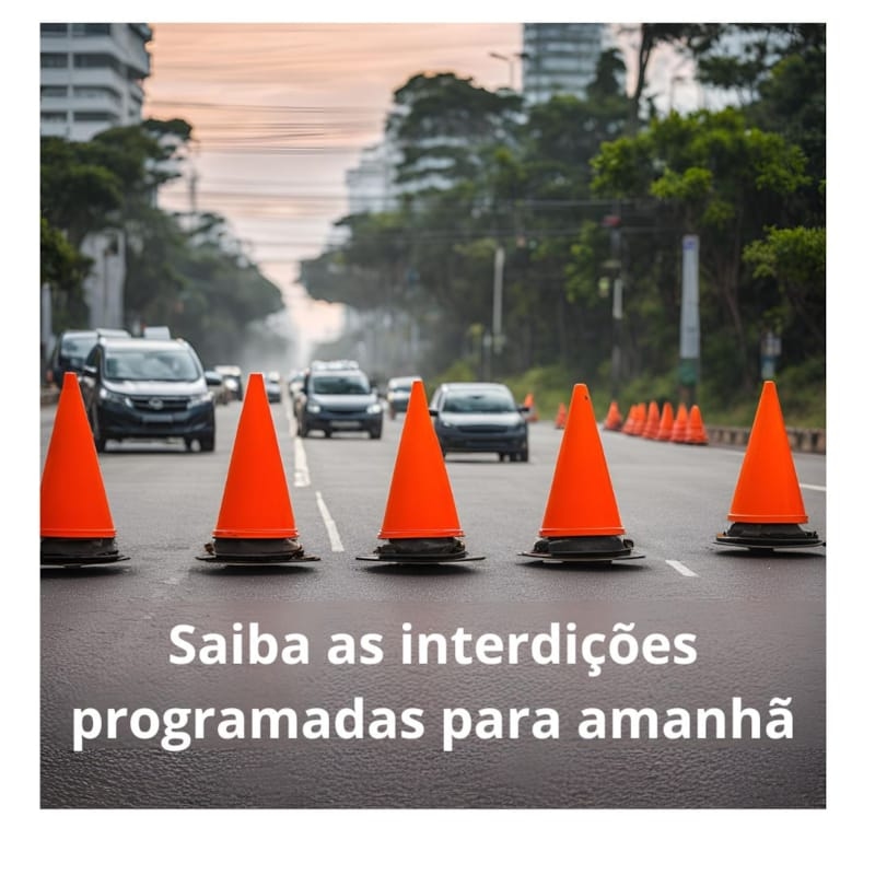 -Interdição do cruzamento da avenida Nossa Senhora de Fátima com a rua Aviador Mário Fundagem Nogueira, a partir das 7h, para pintura de faixas de pedestres;