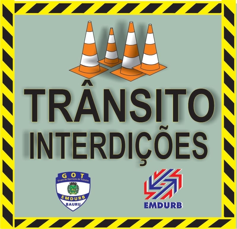 -Interdição no cruzamento das ruas Barra bonita com Paulino Rafael e Calil Rahal, a partir das 13h30, para pintura de faixa de pedestre;