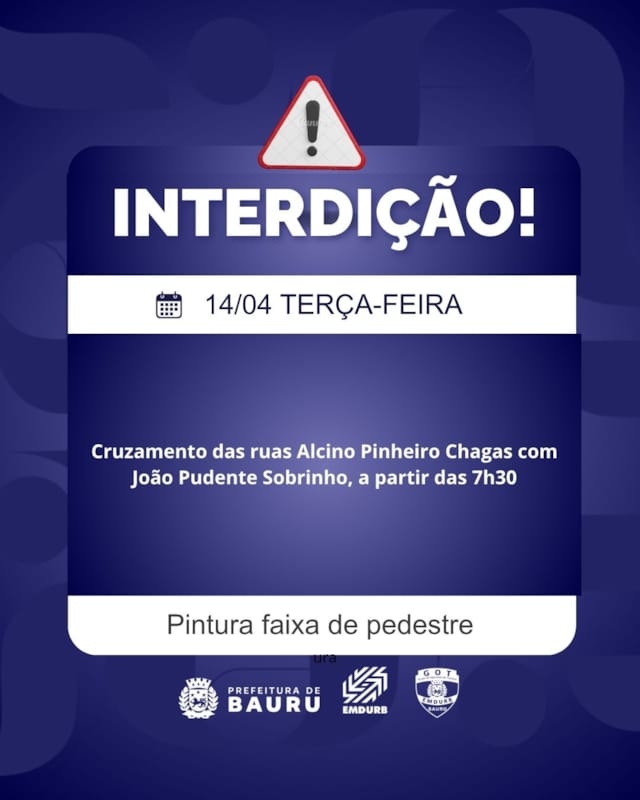 EMDURB informa interdições programadas para terça-feira (14)